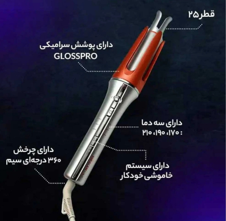 توضیحات : فر کننده مو شیگلم One Touch سایز 25 میلیمتر اصلی بارکد دارسایر امکانات : پوشش سرامیکی GlossPro با گرم شدن سریع و یکنواخت بدون گره، کشیدگی یا سوختگی مو فر کردن سریع در 1 دقیقه با ماندگاری بالا قابل استفاده برای انواع مو، حتی موهای نازک خاموشی خودکار برای افزایش ایمنی مناسب برای مبتدیها، بدون نیاز به مهارت خاص