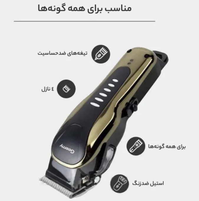 ماشین اصلاح جیمی مدل GM-6063 به همراه لوازم جانبی زیر عرضه میشود:
