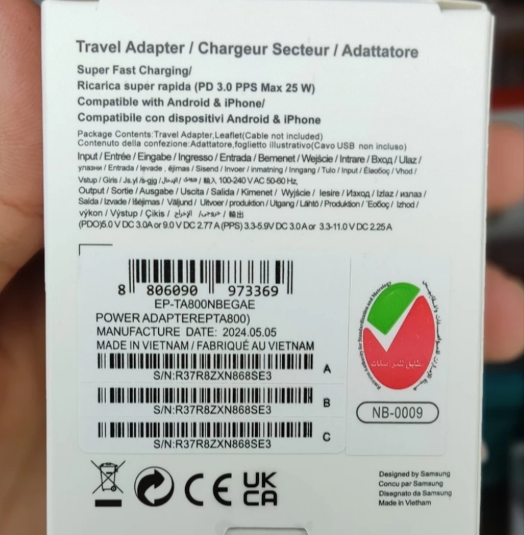 شارژر 25W وات سامسونگ
